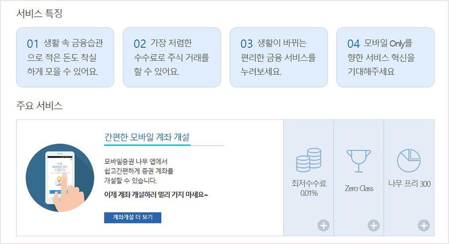 처음엔 주식을 어떻게 해야되나 검색을 통해서 이것저것 봤지만 전문 용어 투성이라 실상 확실하게 끌리는 방법은 잘 못봤던거 같습니다. 그러다가 직장 동료가 이걸로 한번 먼저 주식 계좌를 만들어보고 시작하라고 했는데 그게 바로 NH투자증권나무 상품이었습니다. 요즘은 비대면으로 만드는게 정말 대세잖아요. 은행도 그렇구요.