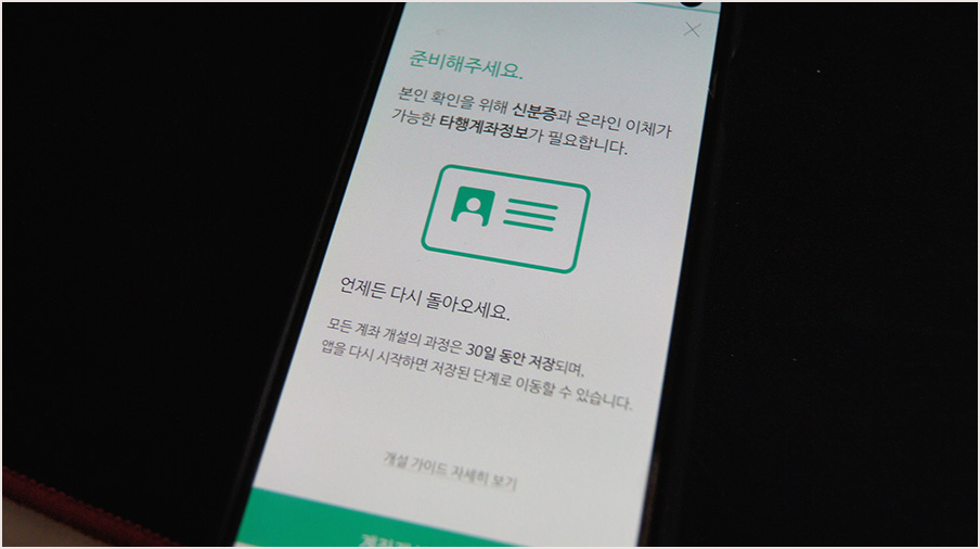 비대면으로 만드는거기때문에 신분증 인증도 필수인데요, 저도 집에서 지갑에 있는거 가져와서 바로 인증했습니다. 카카오뱅크 만들어보신분들이라면 만드는데 별 어려움은 없으실거에요. 만들고 나면 바로 카카오톡이랑 문자가 오는데, 개설이 완료되었다는 알림 문자랍니다.