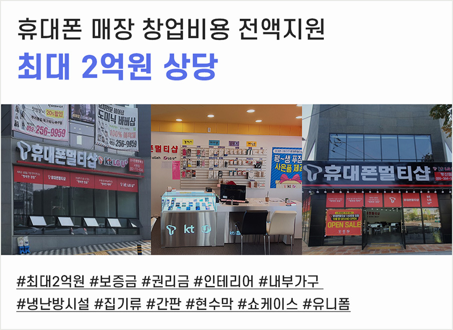 그렇게 들은 무자본 창업중에 창업아이템추천하는 것이 바로 휴대폰 창업인 모바일 파트너스 휴대폰 매장 창업하는데 보증금이니 권리금, 거기다 매장계약하고나서 인테리어나 내부 시설 등등 챙겨야 할게 한두개가 아닌데 그러한 창업지원비용을 최대 2억원까지 지원해주고 있었습니다. 창업할때 이러한 자금문제로 고민하시던 분들이 계실텐데 이러한 부분에서는 기본적인 조건이 많이 해결되는 셈입니다.