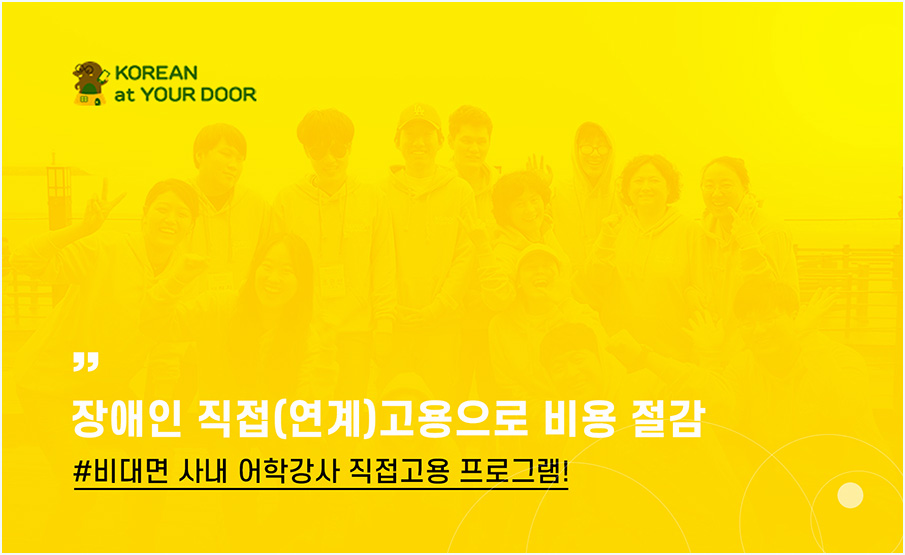 장애인 고용에 따른 혜택과 부담 감소, 사내 복지 향상, 기업의 이미지 향상 등 대면하지 않고 한꺼번에 해결가능한 장애인 어학 강사 채용. 정부의 비대면 바우처 사업으로 선정도 된 만큼 믿고 의뢰해보시길 바랍니다.