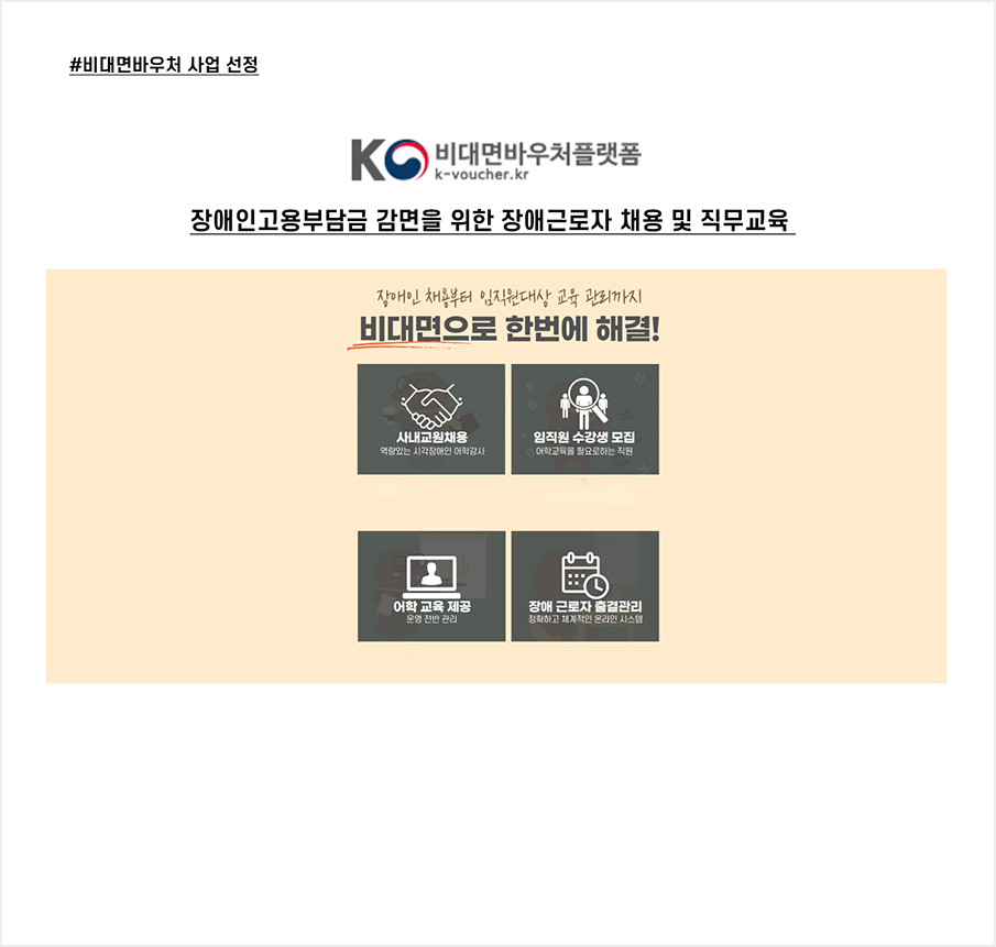 안녕하세요 비대면 바우처 공급기업인 코리안앳유어도어 입니다. 기업에서는 필수로 장애인근로자를 고용해야하는 의무가 있습니다. 그에대한 부담감이나 원하는 직무에 맞는 사람을 채용할 수 있다면 큰 어려움없이 진행이 되겠지만, 그 또한 힘든일인것은 사실입니다. 직접고용하는게 힘들기때문에 저희와 많이 협업하여 이루어지기도 하는데요. 농가지원바우처의 여러가지 혜택을 받아보시는것은 어떨까요.