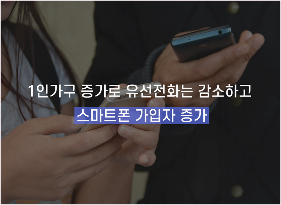 1인가구는 계속해서 증가하고 그에 따라 유선전화는 점점 감소합니다. 게다가 요즘은 1인 1휴대폰 보급이 당연시 되면서 자연스럽게 유선전화는 사용하지 않게 되었습니다. 즉 스마트폰 가입자가 계속해서 증가하고 있다는 뜻입니다. 그렇기에 휴대폰 할인매장의 아이템은 확실합니다.