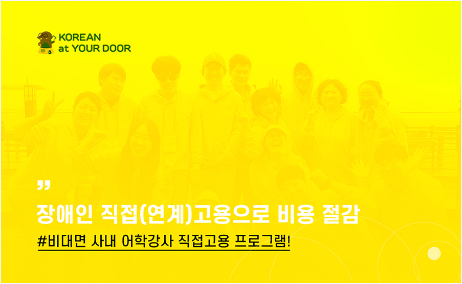 기업입장에서는 장애인분들을 고용하는 과정 자체가 어렵게 느껴지실 수 있습니다. 그래서 케이드는 장애인 직접(연계)고용을 통해 시간적이고 물질적인 금액에 대해 부담감을 줄이도록 비대면 사내 어학 강사를 직접고용하는 프로그램을 진행합니다. 장애인일자리 창출에도 참여할 수 있고, 직원들을 위한 사내어학강사도 채용하실 수 있는 것입니다.