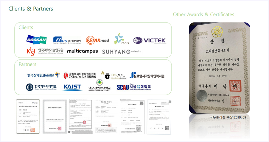 다양한 기업이나 기관과 협력하고 있고, 소셜벤쳐 아이디어 경연대회에서 국무총리 대상을 수상한 케이드이기도 합니다.