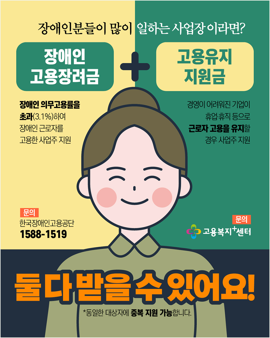 장애인 고용장려금과 고용유지 지원금 둘 다 받을 수 있는 기회인데요.
