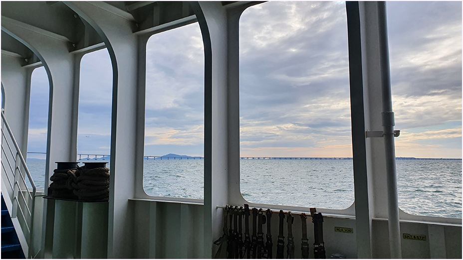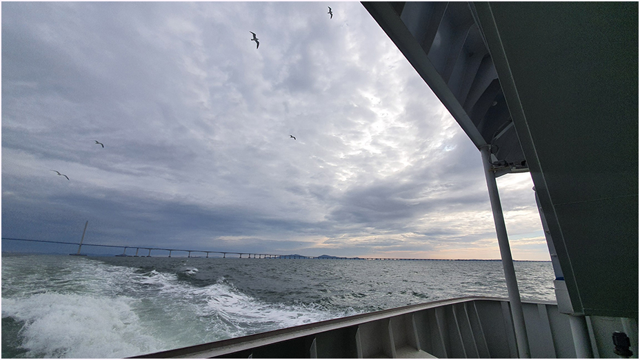 코로나로 1년 반이 넘는 동안 참아 온 여행을 떠나는 거라 들뜬 마음에 대부도 아침 바다와 탑승한 여객선의 사진도 몇 장 찍었습니다.