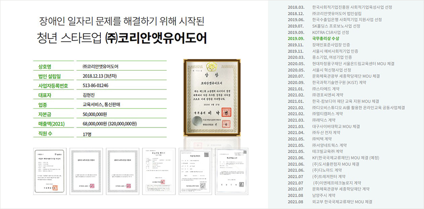 코리안 앳 유어 도어, 케이드는 장애인표준사업장으로 제공하는 서비스를 이용하는 경우 장애인 고용에 직접, 간접적으로 기여한다고 인정을 받을 수 있습니다.