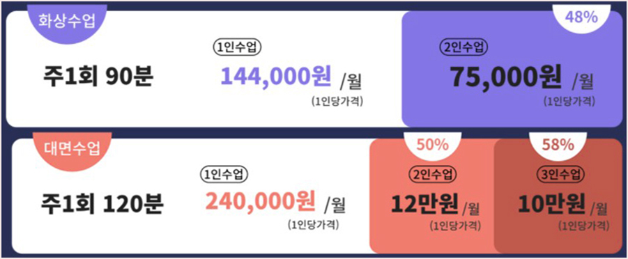 여의도어학원을 알아보신다면 학습자가 원하는 형태로 온/오프라인으로 진행이 가능하며 화상수업과 마찬가지로 수강자수가 늘수록 본인 부담 비용도 크게 줄어든다는 것 토글에서 강조드리고 싶습니다.