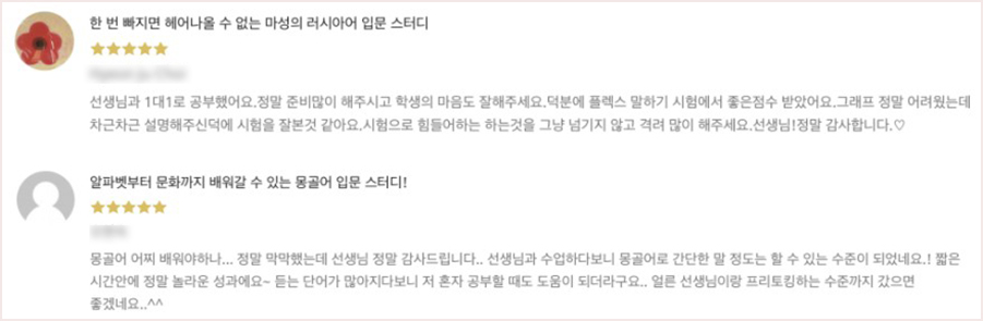 또한 나의 현재 레벨이 궁금하신 분들이라면 본격적으로 수업을 시작하기 전 무료 레벨 테스트를 진행하고 있고, 따로 오프라인으로 방문하지 않고 전화나 채팅을 통해 한국어 사용이 능숙한 원어민 강사와 부담 없는 소통이 가능합니다.