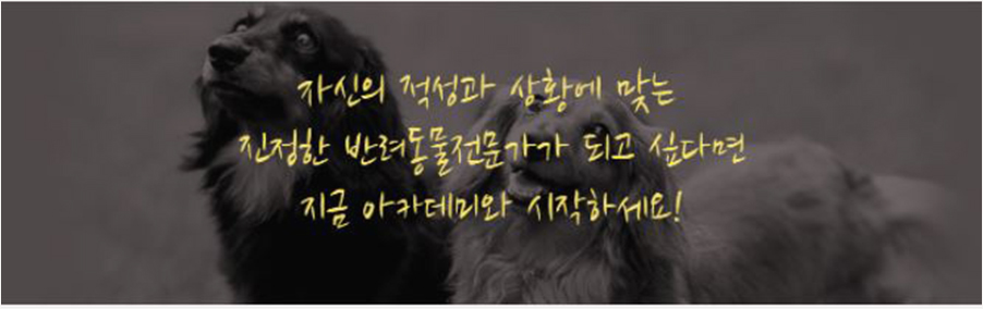 관련분야로 취업을 희망하시거나 반려동물을 더욱 깊게 이해하고 싶으신 분들은 한국반려동물아카데미의 반려동물행동지도사 과정에 도전해보시기 바랍니다.