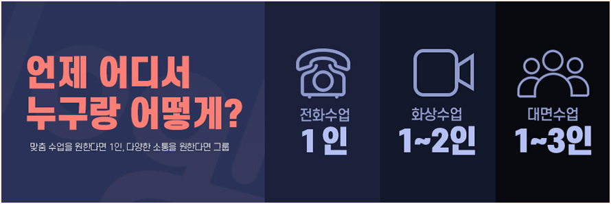 짧은 시간이라도 자신이 말하고 대화하는 시간이 집중될 때 실력이 향상되는 만큼 여러 명이 함께 진행하는 학원 수업은 한계가 있기 마련입니다.