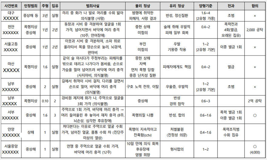 피해자의 피해 정도가 일단 너무 심했기에 회복이 느리니 양형 정상에서도 폭처법에 의거해 선처가 쉽지 않은 상황이라 폭행죄변호사로서도 대응하기 상당히 난해한 케이스였습니다.