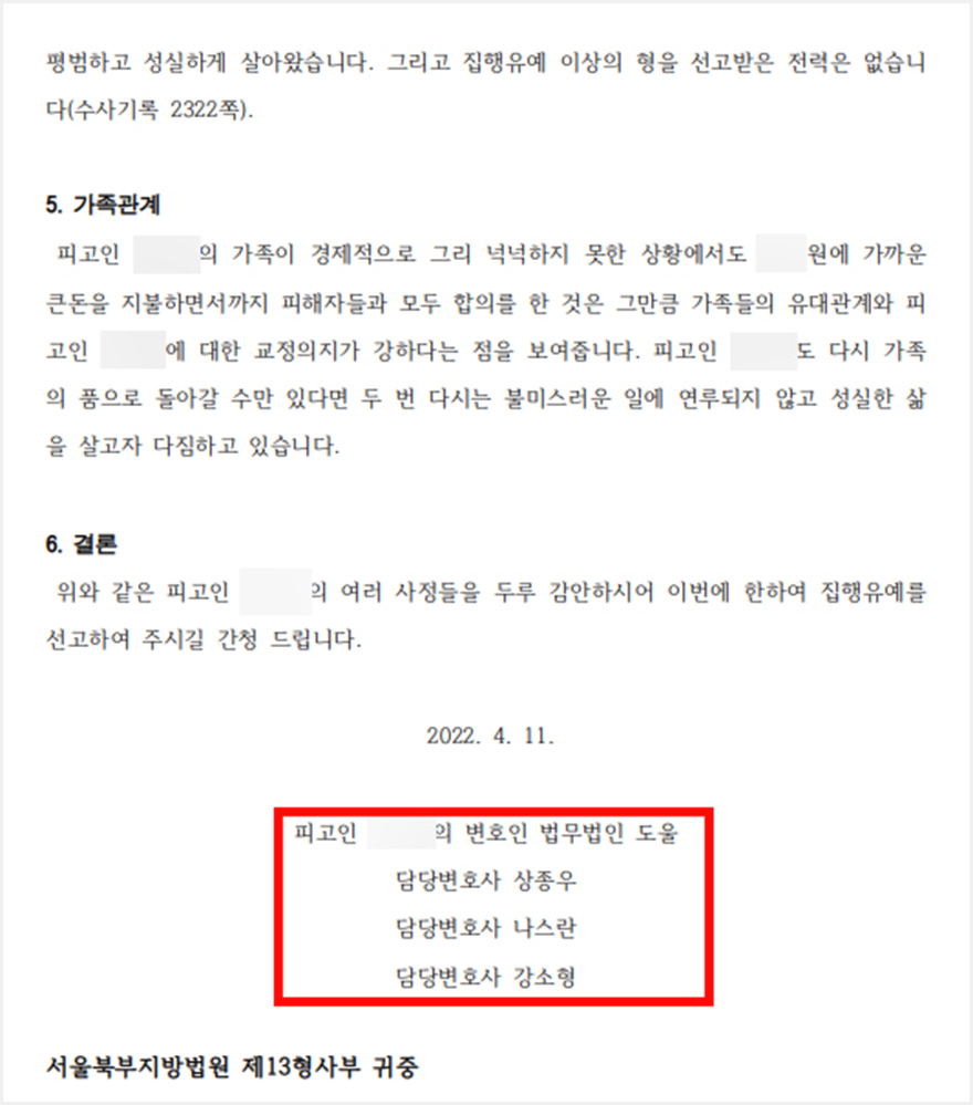 의뢰인 분이 집행유예로 석방되면서 가담이나 구형이 약했던 동행분들도 집행유예로 석방을 받을 수 있었습니다.