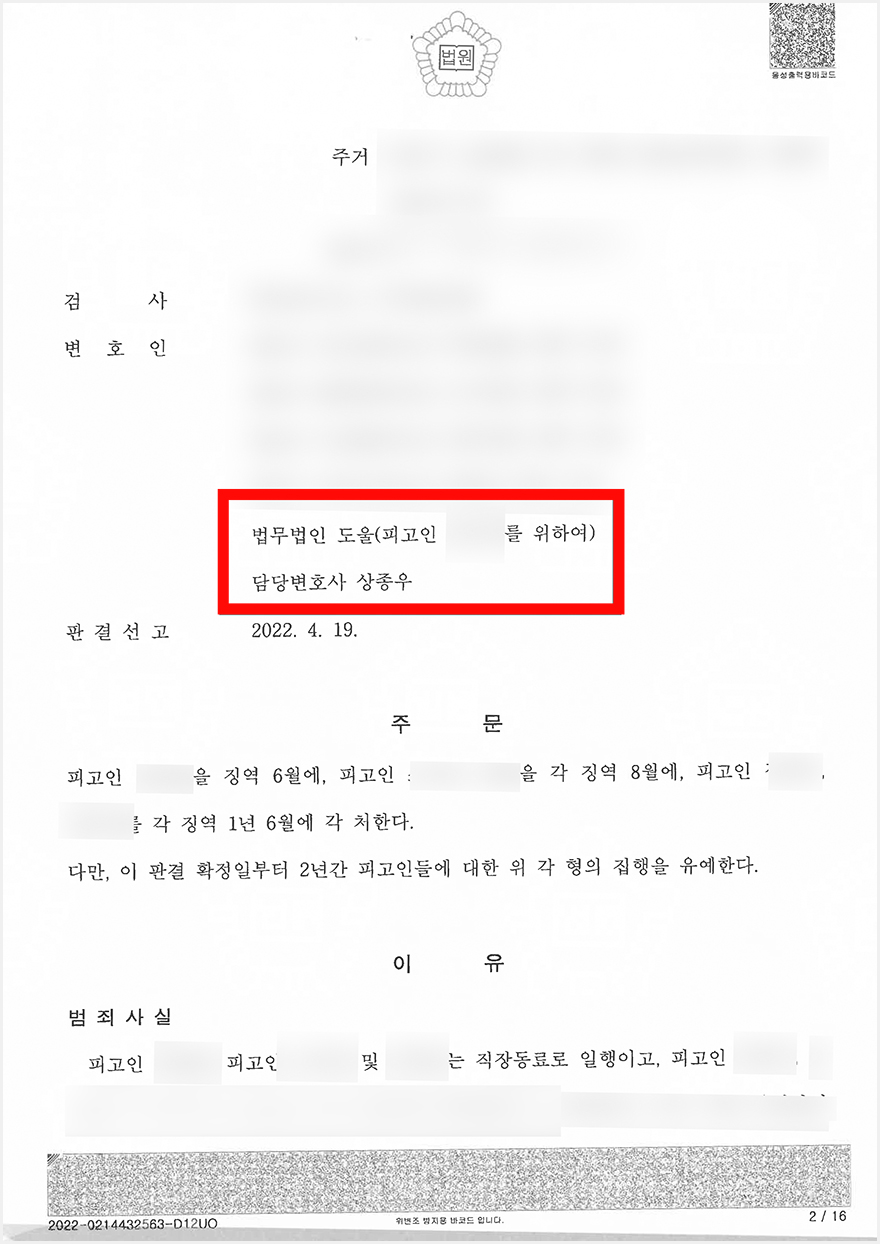 그 결과 의뢰인 분과 친구들 모두 집행유예를 선고받을 수 있었습니다.
