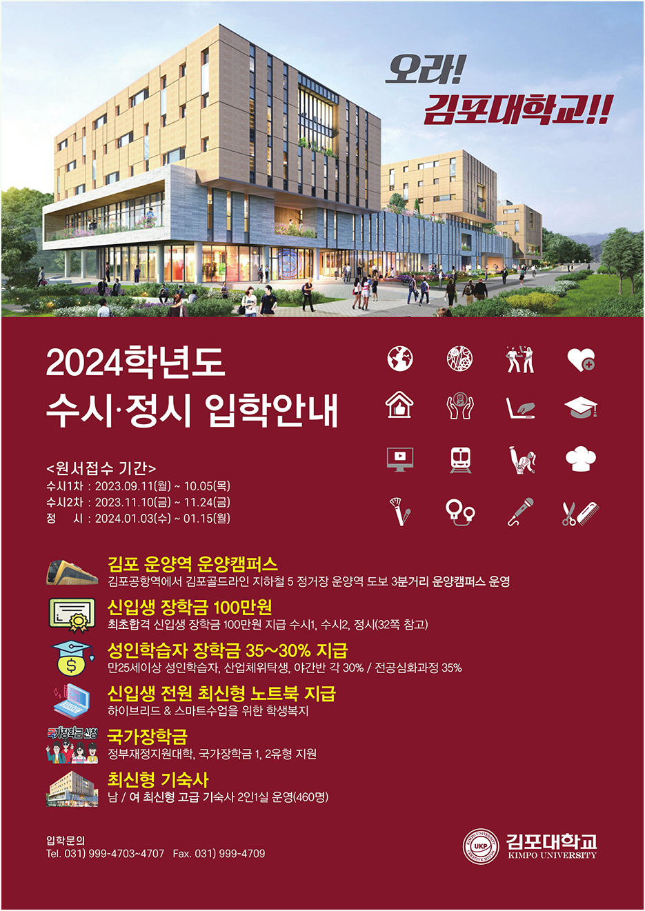이와 더불어 최초지원과 동시에 등록을 했을 때 장학금 100만 원을 학교에서 지급받을 수 있으며 기숙사는 2인 1실인데 최근에 지어져 쾌적한 기숙사 생활을 할 수 있습니다.