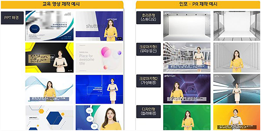 이외에도 기업 프레젠테이션 및 AI 도슨트와 같은 인포메이션 영상이 있습니다.