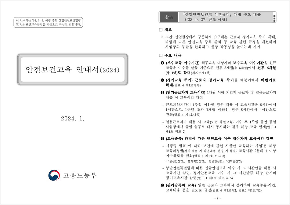 이는 정기 교육과 채용 시 교육, 작업 변경 시 교육 등으로 구분할 수 있습니다.