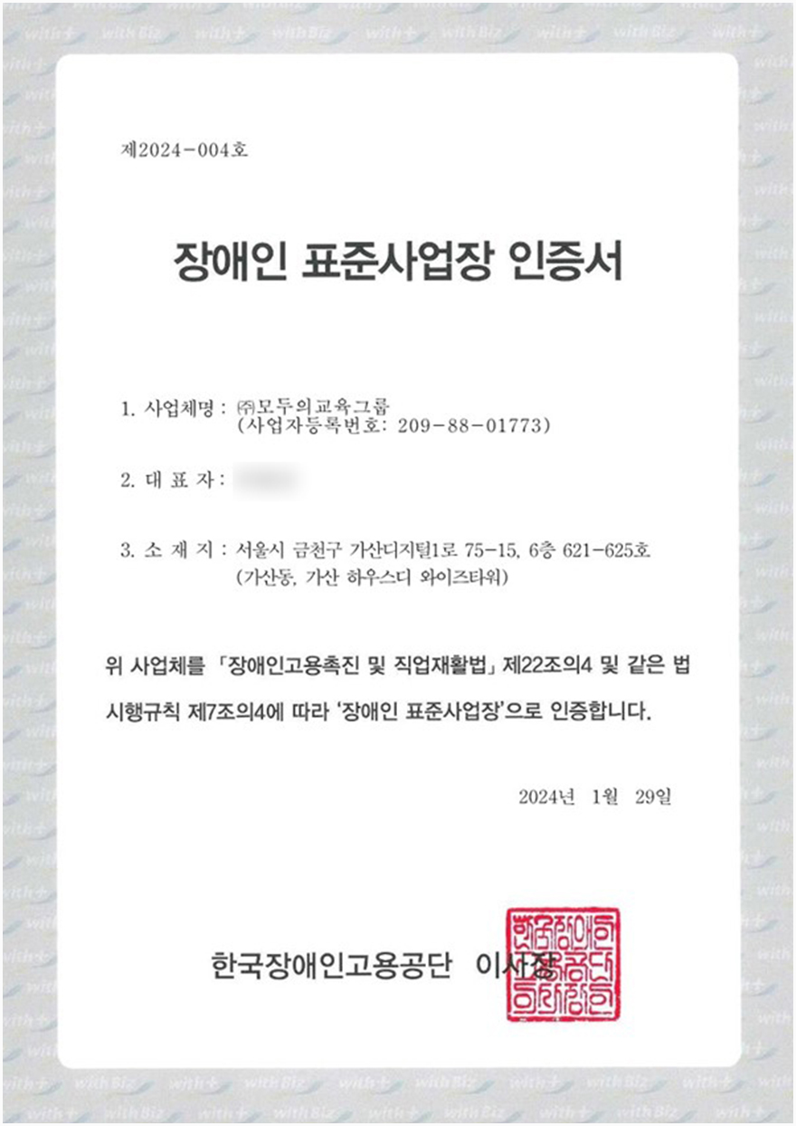고용노동부인증기관 및 장애인 채용 업무를 담당하고 있는 모두의교육그룹입니다.