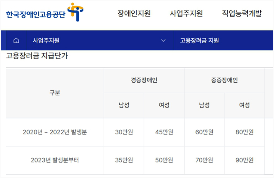 고용한 장애인 수에 따라 지급이 달라질 수 있으며 일정 기간 이상 고용할 경우 추가적으로 장려금 수령도 가능해집니다.