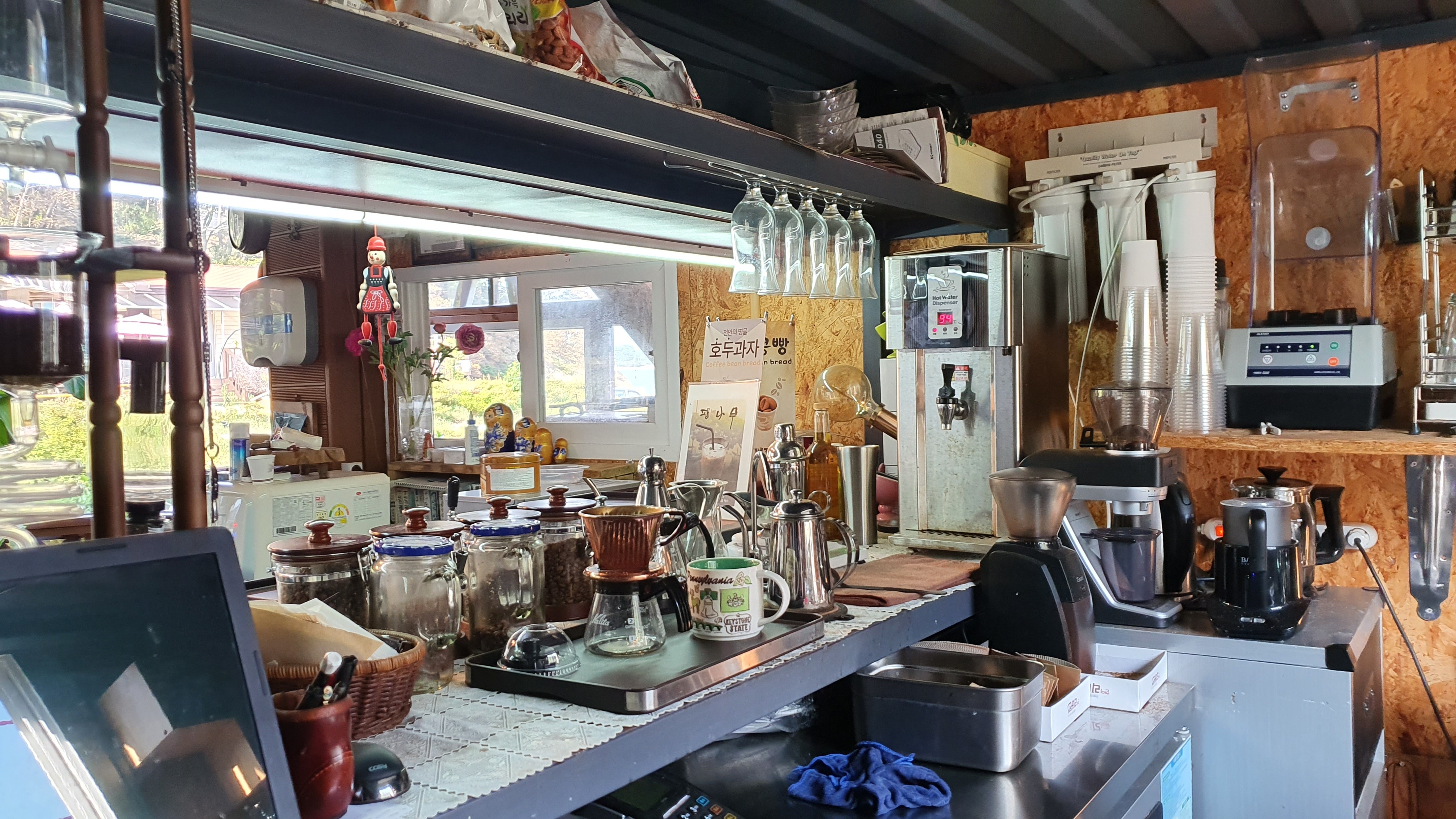 직접 내린 핸드드립의 깔끔하면서 깊은 향을 느끼는데 살짝 거짓말 보태서 주간에 쌓였던 피로가 모두 날아가는 것 같이 느껴짐 안에서 마셔도 되고 테이크아웃도 가능해서 커피 한잔 내려서 바다를 보면서 마시는 묘미도 느껴볼 수 있음.