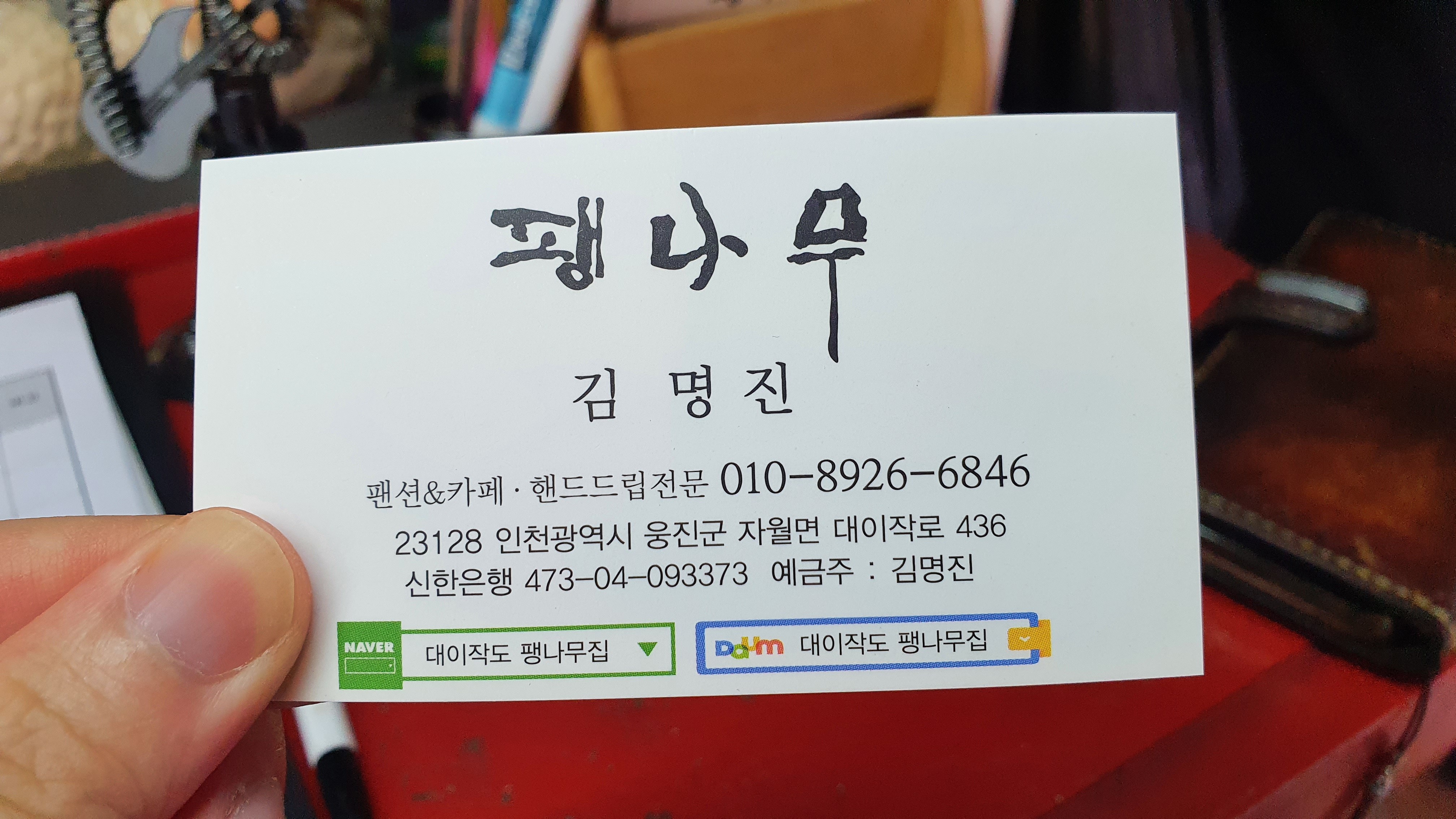 카페 내부에 펜션 명함이 있길래 하나 가져왔는데 펜션과 핸드드립 커피 전문 카페를 동시에 운영하시면서 부지런히 사시는 것 같아서 좀 멋지게 보였던 것은 사실임.