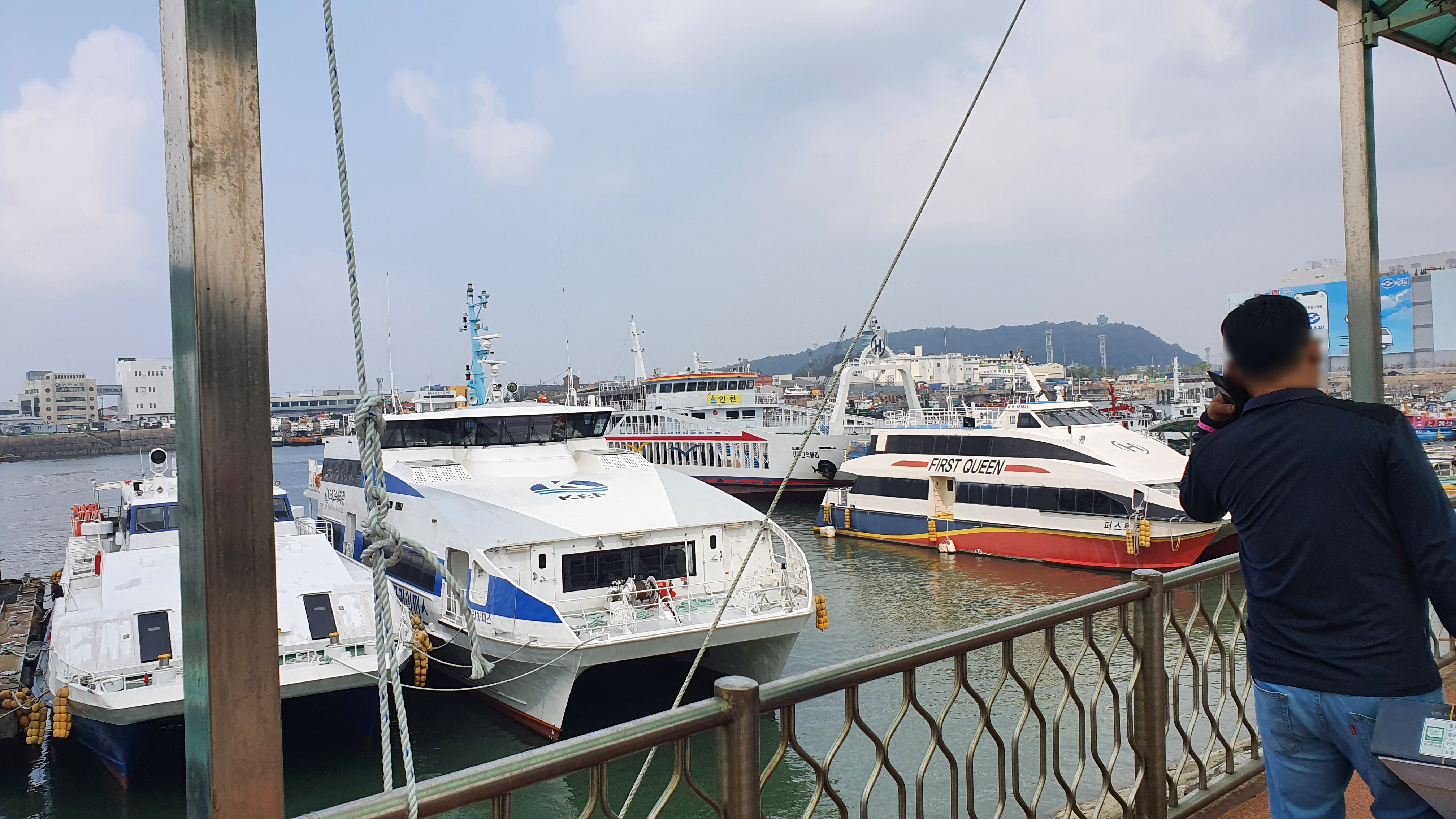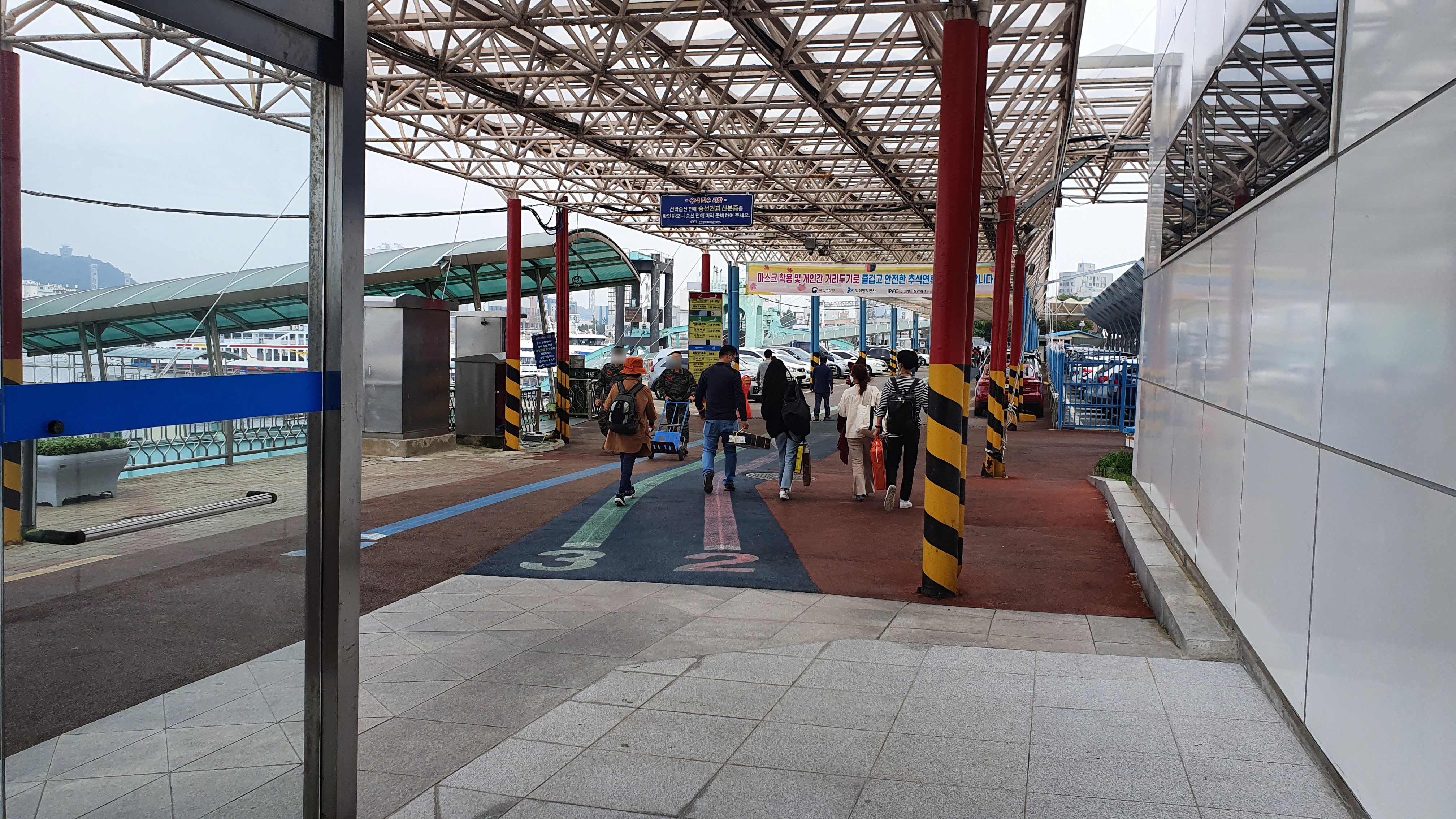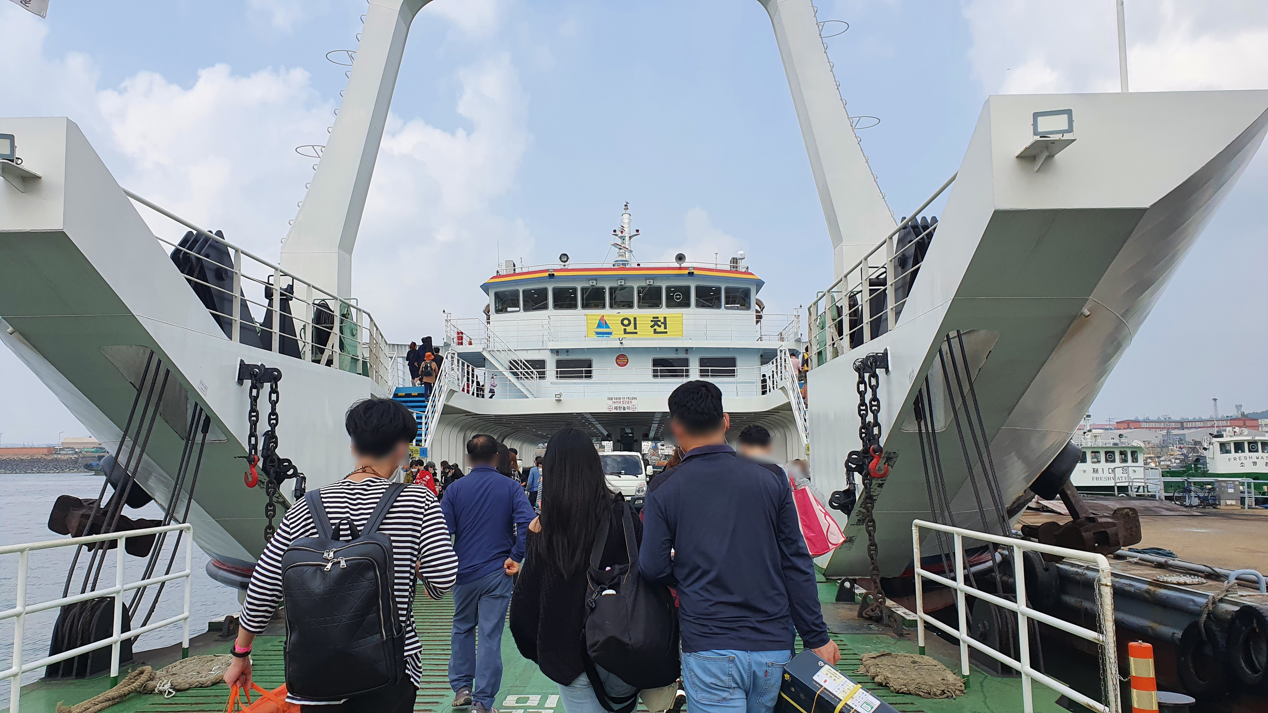 들어가는 배는 두 가지가 있는데 차도선과 여객선이 있는데 차도선 시간이 젤 이른 것 같아서 그거 타고 들어가기로 함.