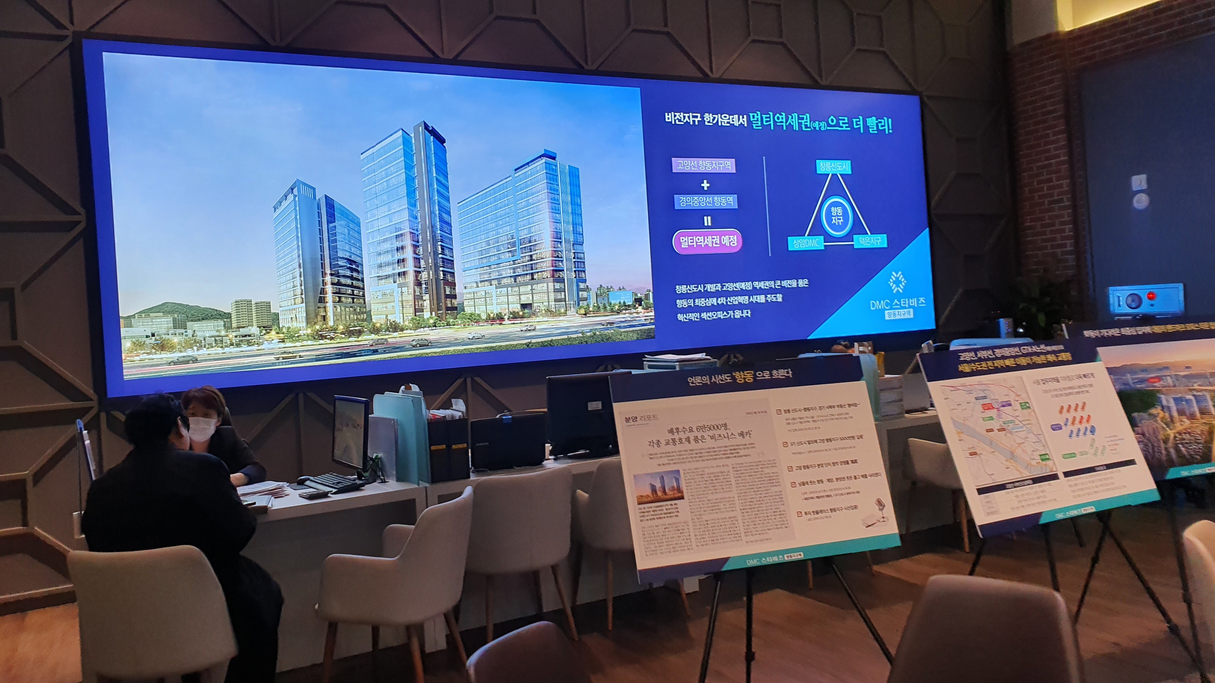 분양사무소 안에는 DMC스타비즈향동의 전체적인 조감도와 모형을 통해 큰 규모를 실감할 수 있었음.