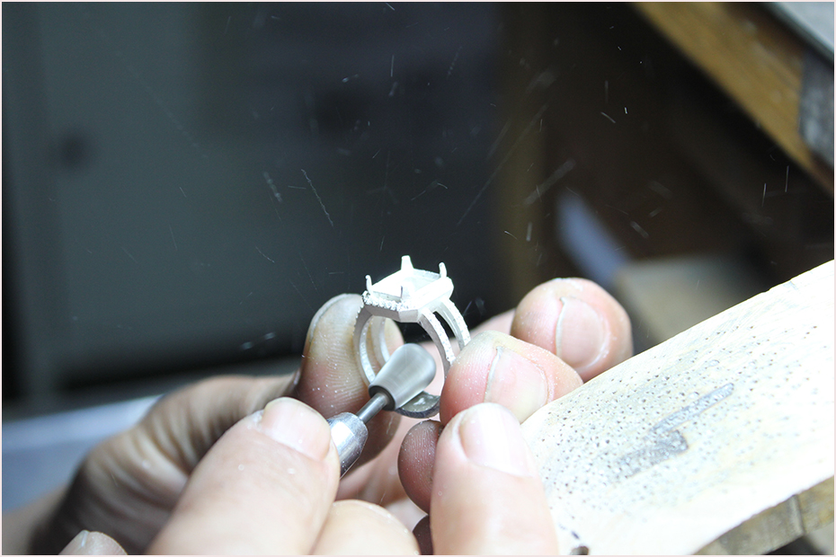 고객님들께서 디자인한 쥬얼리들은 커스티지의 대표와 디자이너들의 손끝에서 핸드 드로잉되며 캐드를 통해 3D 데이터화 되어 제작 공정에 들어서게 됩니다. 이 과정에서 조금 더 섬세한 표현과 정밀한 공정을 위해 국내에는 몇 대 도입되지 않은 3D DLP 프린팅 기기를 통해 제작에 필요한 기초 도안이 잡히게 됩니다.