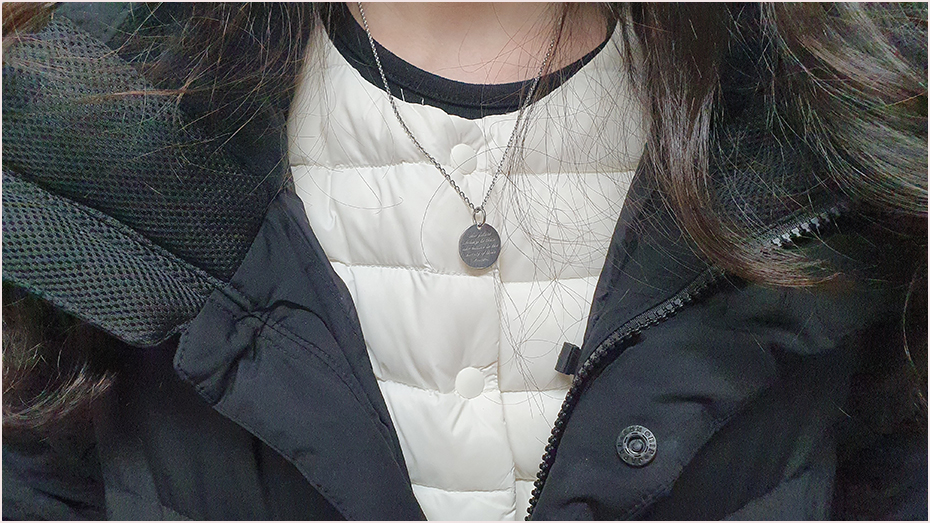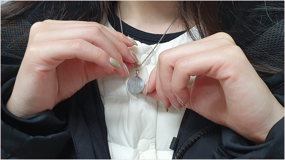 매끄러운 코인 앞면에는 선물을 받는 사람에게 전하고 싶은 메세지나 이니셜 혹은 특별한 날짜 등 원하시는 문구에 대한 각인이 가능하며 뒷면에는 커스티지의 로고와 실버 각인이 되어 있기에 단조로움이 없는 양면 쥬얼리로 활용이 가능합니다. 또한 마감이 되는 고리를 조절할 수도 있기에 47cm의 롱버전과 42cm의 숏버전으로 착용해보실 수도 있습니다. 두 길이 모두 부담스럽지 않은 아름다움을 자랑하기에 데일리 쥬얼리는 물론 포인트용으로 적절하게 사용하실 수 있으시답니다.