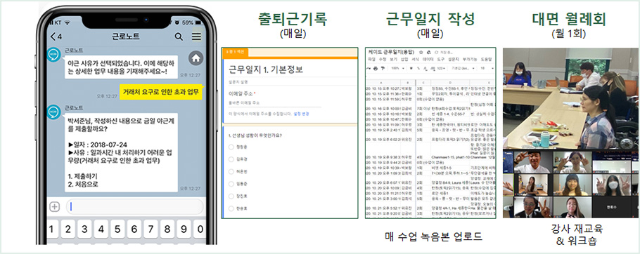 보시다싶이 출퇴근기록, 근무일지 작성, 대면 월례회 등 양질의 서비스를 위해 늘 퍼포먼스를 관리하고 있는 모습입니다.