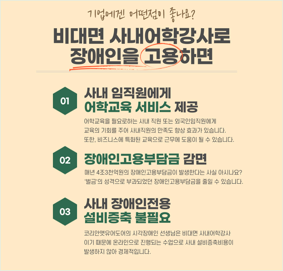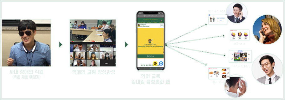 시각장애인 강사를 비대면 사내 어학강사로 채용하는 서비스입니다.